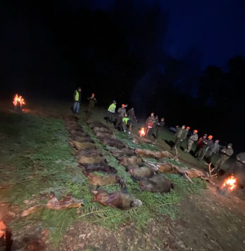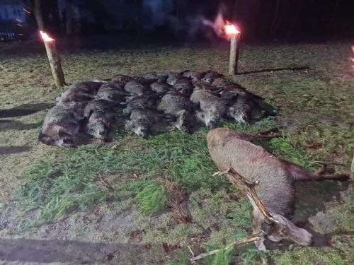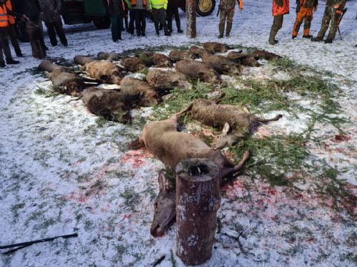 Der afgives omkring 150 til 250 skud; der nedlægges normalt 50 til 75 stykker vildt på 3 intensive dage, flest vildsvin, men også lidt kronvildt, måske dåvildt, råvildt og et par ræve.