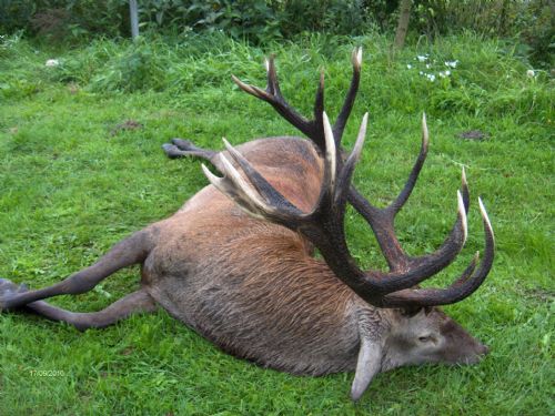 Jeg har aldrig tidligere skudt til hjort, og allerede den 1. aften , var pulsen oppe at køre, vi pürschede op til et tårn, sad ca 1 time og så trådte hjorten ud ca. 300 meter fra os, en stor yngre ulige 12-ènder, opsats iflg. stalkeren ca 5 kg, og den var inde og vende på ca. 120 meter – det kunne let være blevet for nemt – jeg valgte dog at vente på en ældre hjort, der var jo trods alt 7 pürsch tilbage, en beslutning som jeg bestemt ikke fortrød, men hvor tvivlen meldte sig jo tætte jeg kom på deadline.